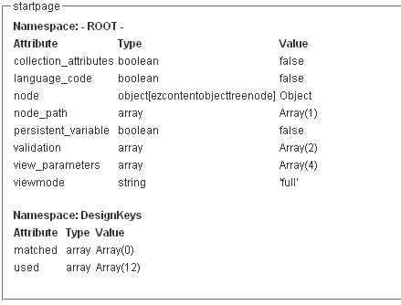Shows the variables that are available in the template together with their namespaces . The output is roughly similar to the one created by the attribute operator. Please note that this is EXPERIMENTAL. It works fine for me (therefore the beta status) but I haven't tested it much beyond my needs.